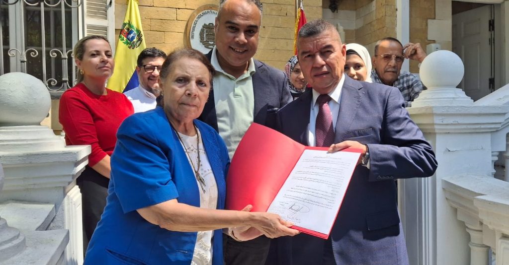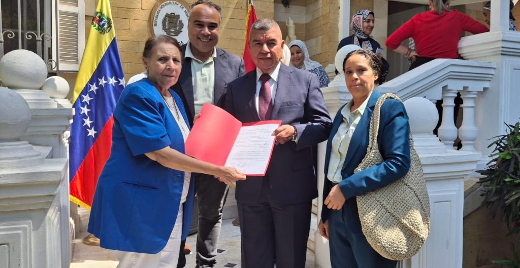 El Cairo, Egipto, 14 de septiembre de 2025.- En un acto de solidaridad internacional, la Embajada de la República Bolivariana de Venezuela recibió un comunicado respaldado por organizaciones sociales, políticas y culturales egipcias, que rechaza contundentemente el despliegue militar de Estados Unidos (EEUU) en el Caribe y respalda la soberanía de Venezuela.