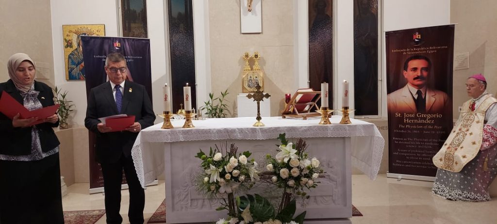 El Cairo, 23 de octubre de 2025.- Colmados de orgullo patrio, la Embajada de Venezuela en Egipto se unió al júbilo nacional que embarga a todo el pueblo venezolano por la histórica canonización del doctor José Gregorio Hernández y la madre Carmen Rendiles, los primeros santos del país suramericano, hecho de elevada espiritualidad que honra la fe viva del pueblo bolivariano.