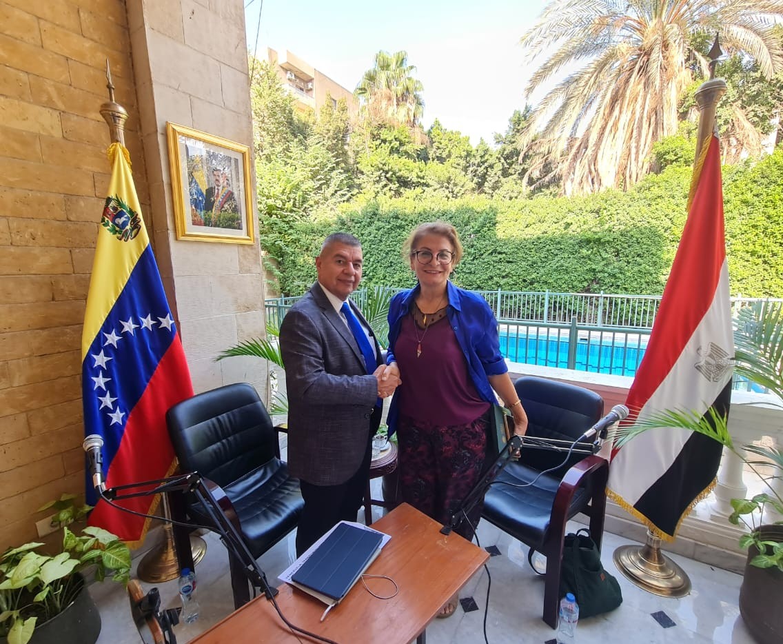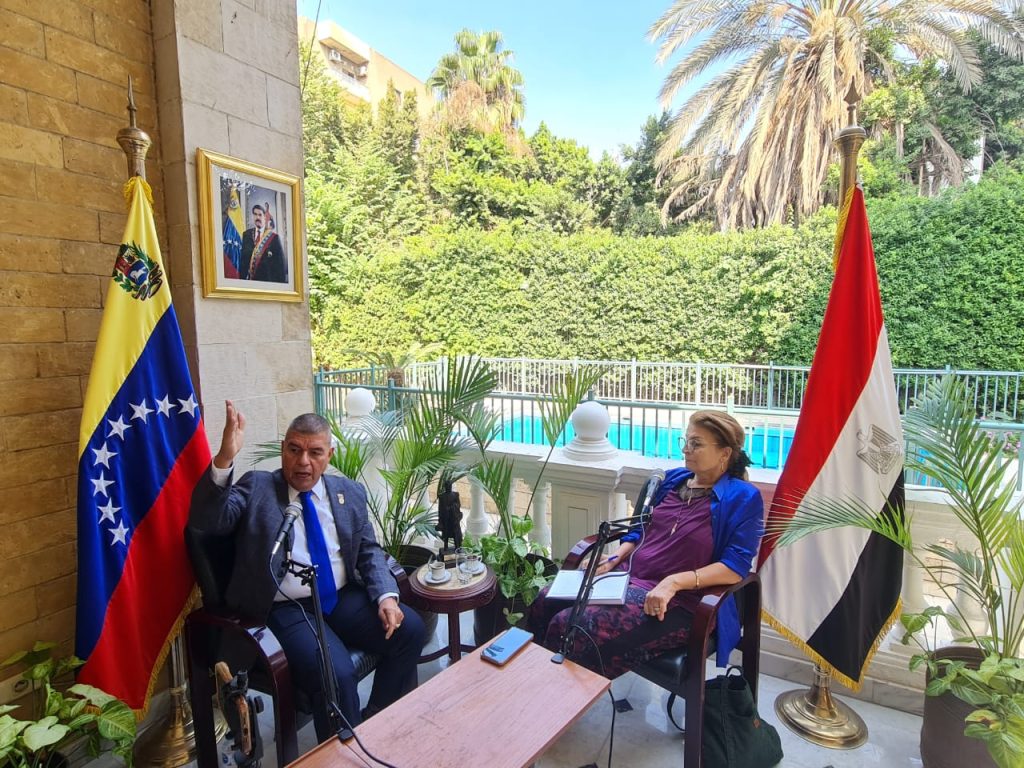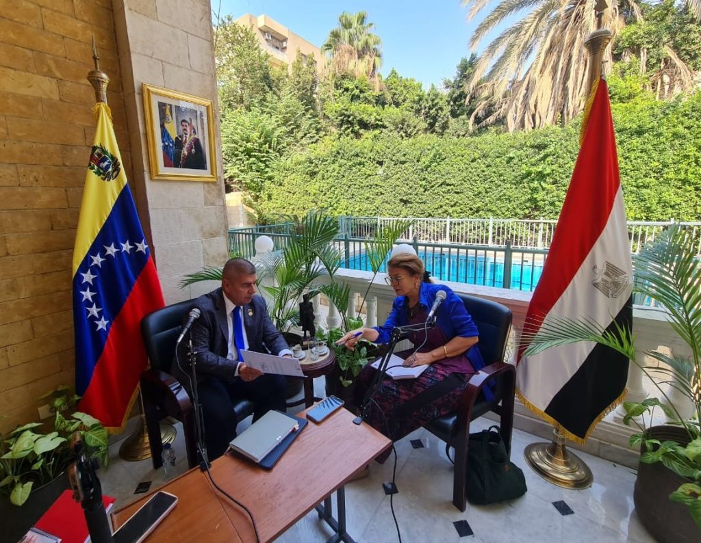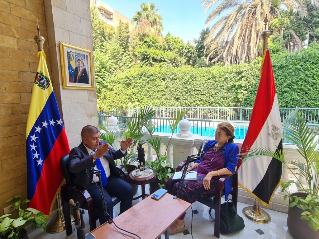 El Cairo, 26 de octubre de 2025.- Prosiguiendo con el avance de la Diplomacia Bolivariana de Paz, el embajador de Venezuela en Egipto, Wilmer Barrientos Fernández, concedió una extensa entrevista al podcast que conduce la reconocida periodista independiente Nour El Hoda, espacio interactivo en el que se abordan diversos ejes temáticos de interés bilateral y regional, con especial énfasis en las amenazas a la soberanía nacional del país suramericano.