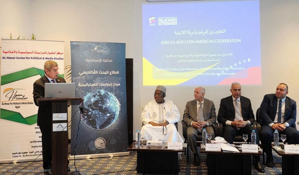 El Cairo, 25 de noviembre de 2025.- En atención a la invitación extendida por la Biblioteca de Alejandría y el Centro Hewar (Diálogo), la Embajada de Venezuela en Egipto participó en la Conferencia Conjunta intitulada “Cooperación Africano-Latinoamericana: Una Asociación para el Futuro”, que sirvió de marco para tratar una amplia agenda de temas de interés birregional desde una óptica integral.