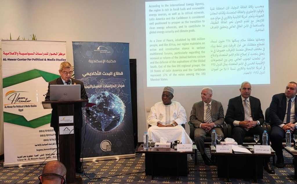 El general Hamdy Labib, presidente del Centro Hewar, destacó que la institución tiene una visión clara sobre el papel activo de Egipto en los dos continentes, en razón que la República árabe tiene relaciones con sus hermanos africanos y sus amigos latinos, que la convierten en un punto de partida para establecer asociaciones con la capacidad de consolidar el trabajo conjunto en el marco de la Cooperación Sur-Sur.