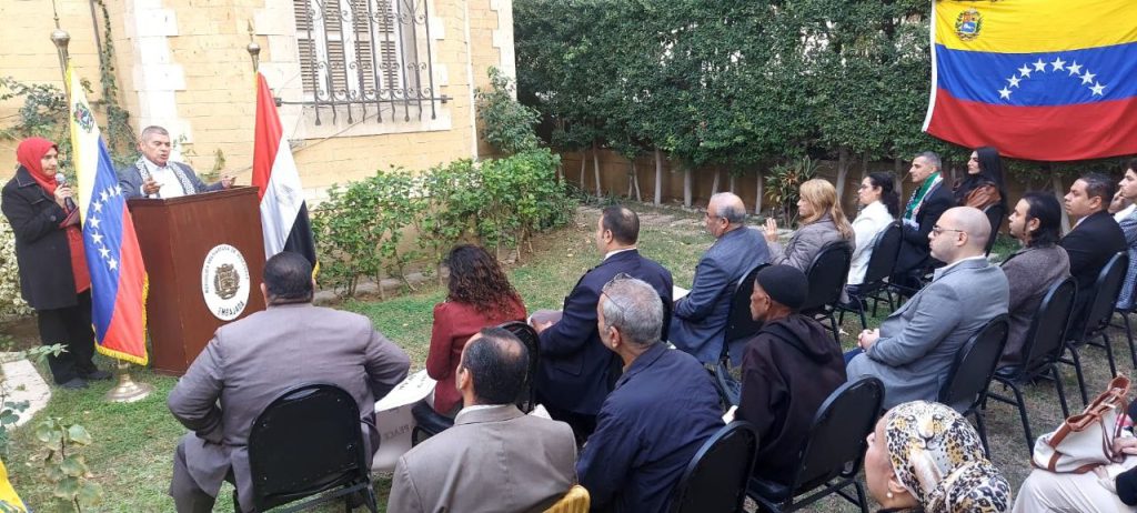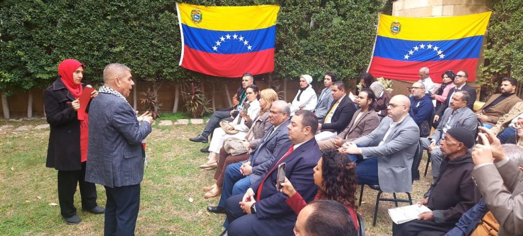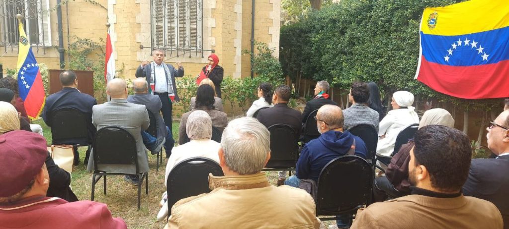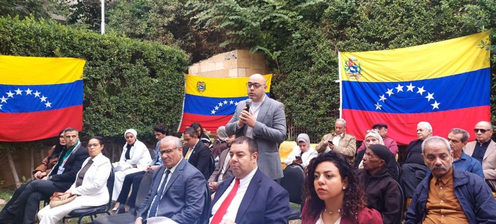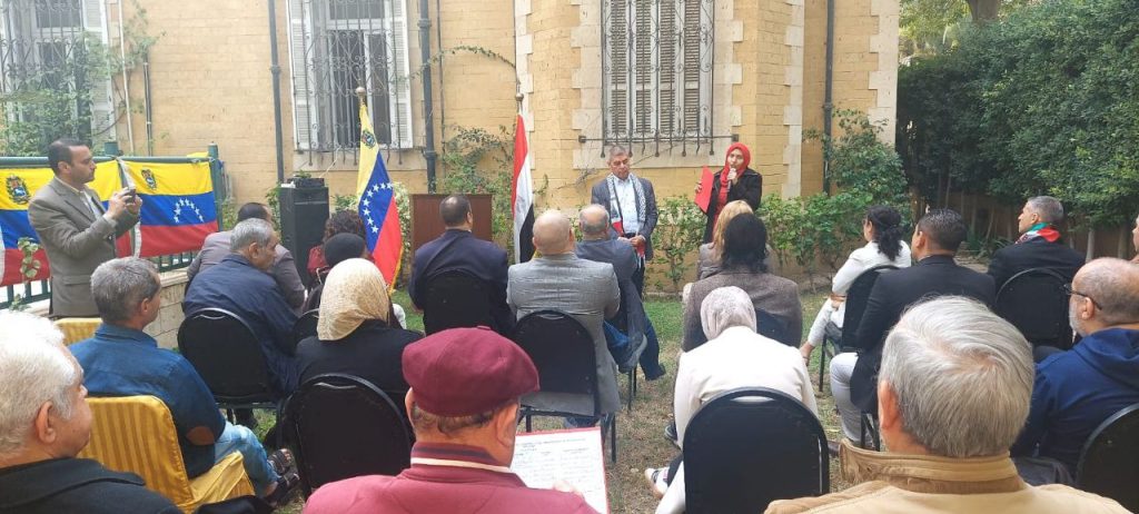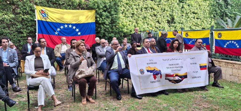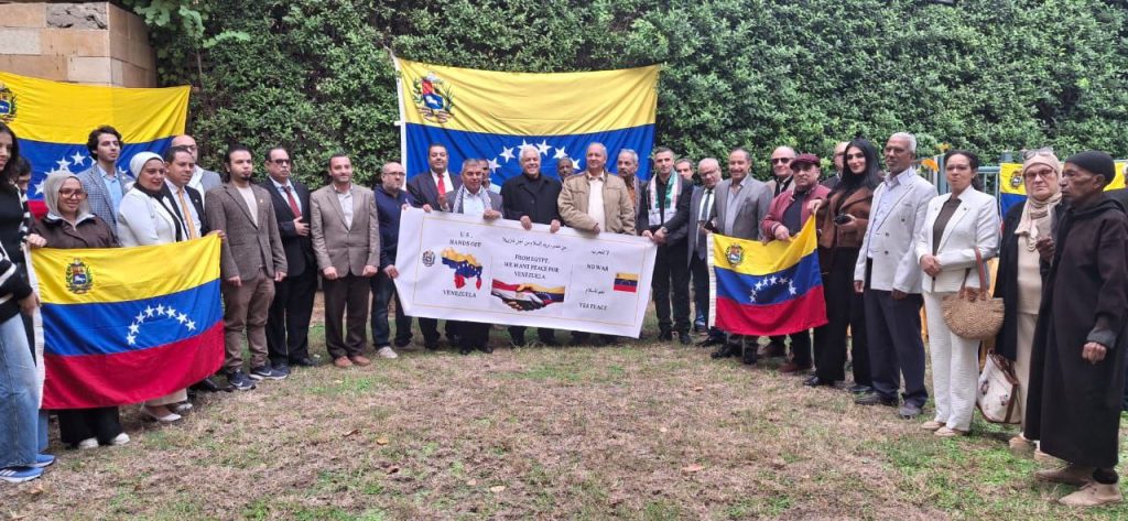 El Cairo, 10 de diciembre de 2025.- Como contribución a la defensa de la sagrada soberanía nacional y en respuesta a la desmedida agresión que pretende perturbar la tranquilidad de su pueblo, la Embajada de Venezuela en Egipto reunió a miembros de los grupos de solidaridad que hacen vida en El Cairo, quienes participaron activamente en la “Jornada Mundial de Movilización por Venezuela: contra la guerra y por la paz”, la cual contó con la masiva presencia de las fuerzas progresistas de la sociedad egipcia.